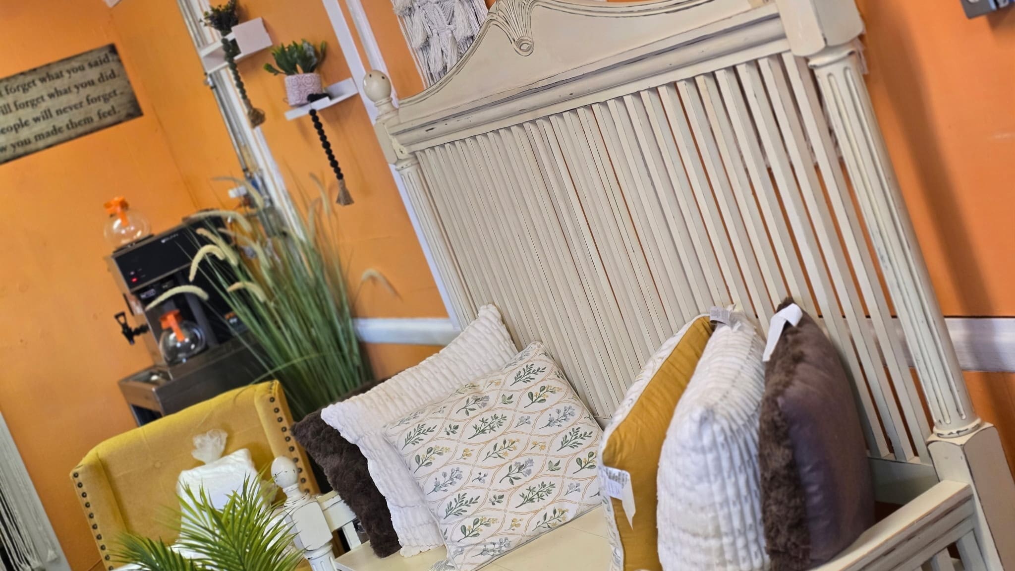 “I got sick and I needed a job — that’s what started it,” she said. “I was having a hard time raising money for my nonprofit, so I thought if I opened a store I could support myself and add a coffee shop. Part of those sales could help fund the rehab work for my nonprofit.”