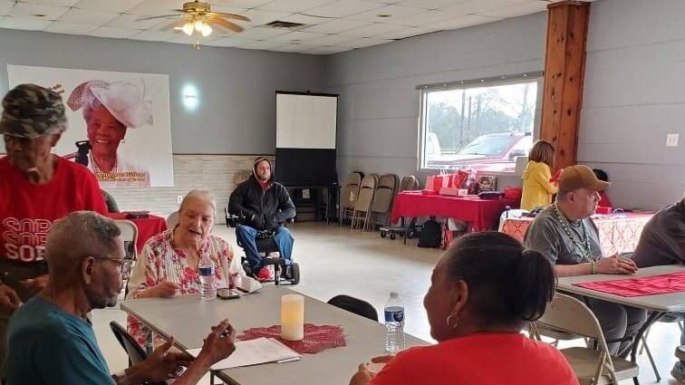 On February 19, residents from the Woodlands Park Nursing Home and Rehabilitation Center were transported to the Family Restaurant in Shepherd, Texas, where they joined volunteers and community members for an afternoon of activities designed to engage both mind and body.